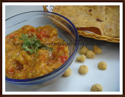 The recipe is taken from Tarla's 'Rajastani Cookbook'.When I saw the name Mangodi Ki Khadi, I thought we will be using yogurt like the other khadi's but I was wrong.It uses tomatoes and gets done in less than 15 minutes,and this time includes the time for preparing the vegetables!!