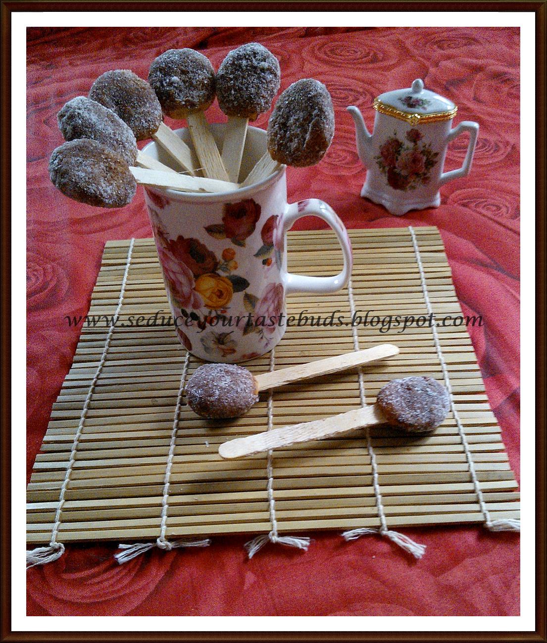 When I mentioned this to Lil Angel, she was overjoyed but wanted this in another form! I recently got this book called 'Stuffs on sticks' and also got a whole bunch of craft / Popsicle sticks to try my hand at making bite sized portions of snacks for kids.Wanting to create something new and put the popsicle sticks to use, I made the baked version of doughnuts and put them on Popsicle sticks to make my version of doughnut pops!